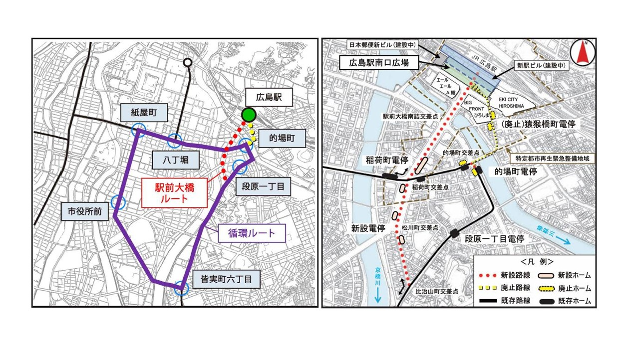 新路線的名稱是駅前大橋ルート,列車將會從JR廣島站的二樓出發,經過一個長斜坡後接到地上路線